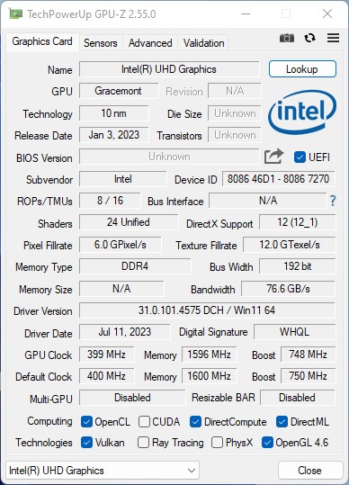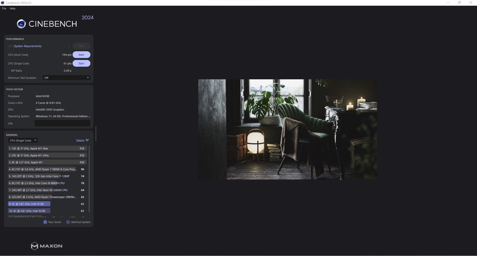 | 73.1 % v7 (old) | 10/2023 | Beelink Mini S12 Pro N100, UHD Graphics 24EUs (Alder Lake-N) | 335 g | 200 USD |