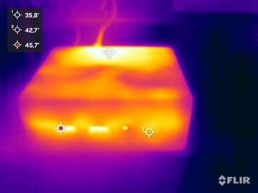 (±) Den maximala temperaturen på ovansidan är 44.9 °C / 113 F, jämfört med genomsnittet av 36 °C / 97 F , allt från 21.6 till 69.5 °C för klassen Mini PC.