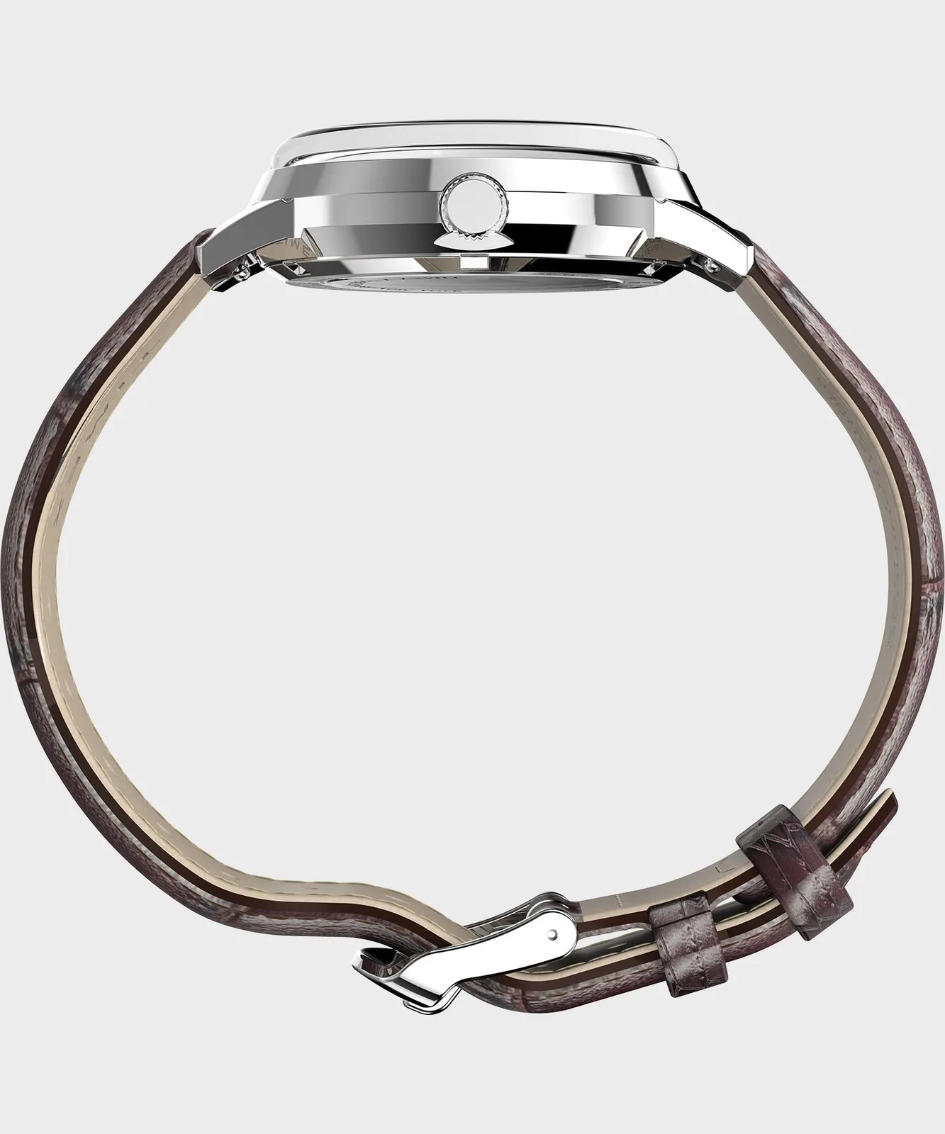 Klockan är försedd med ett brunt läderarmband med präglat krokodilmönster och traditionellt spänne. Klockan har en vattentäthet på 50 meter, vilket är tillräckligt för daglig användning. Kristallen ser ut att vara kupolformad akryl. Olive Marlin är mer av ett mekaniskt alternativ för klädsel.