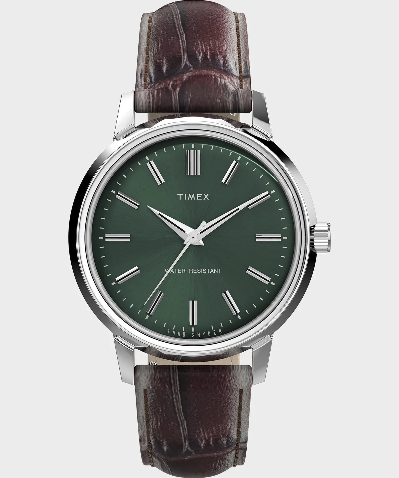 Todd Snyder har släppt ett nytt samarbetsobjekt med Timex och introducerar Olive Marlin Automatic som en modell i begränsad upplaga på designerns onlinebutik. Priset är 279 USD och modellen är listad som TS Exclusive, utan några kampanjrabatter. Endast ett enda storleksalternativ är tillgängligt.