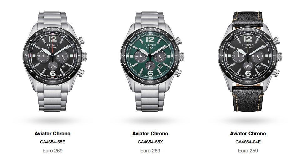 I Europa säljs Citizen OF Collection CA4654-04E aviatorklocka för 259 euro, medan CA4654-55E och CA4654-55X med metallarmband är något dyrare, 269 euro. De finns tillgängliga via auktoriserade Citizen-återförsäljare på hela denna marknad.