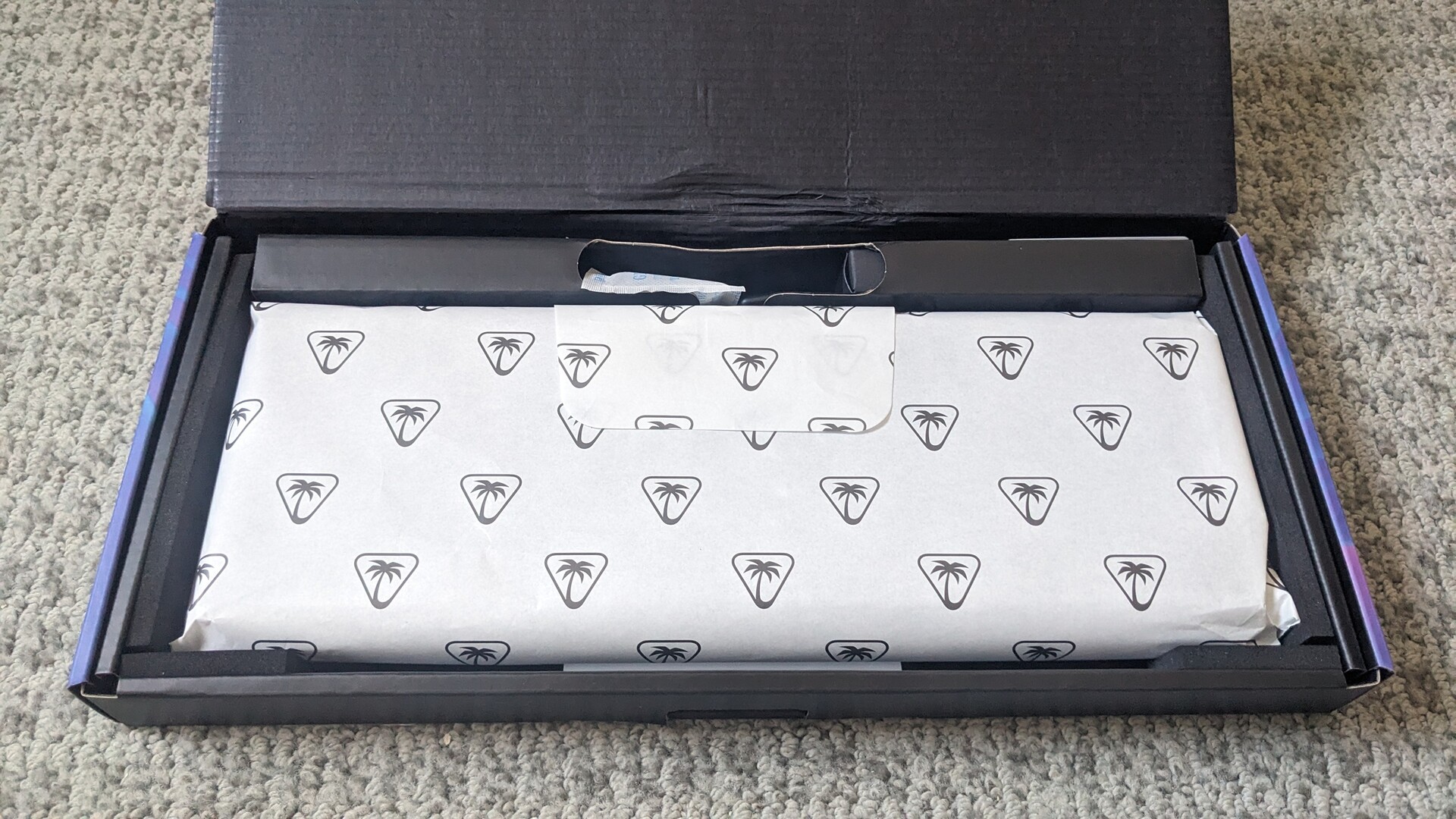 Det senaste Turtle Beach gaming-tangentbordet levereras i en lila rektangulär låda, med kringutrustningen inslagen i silkespapper inuti. Köpare får också en brytare, en 1,8 m avtagbar USB-C-kabel och tre extra Titan HS linjära brytare.