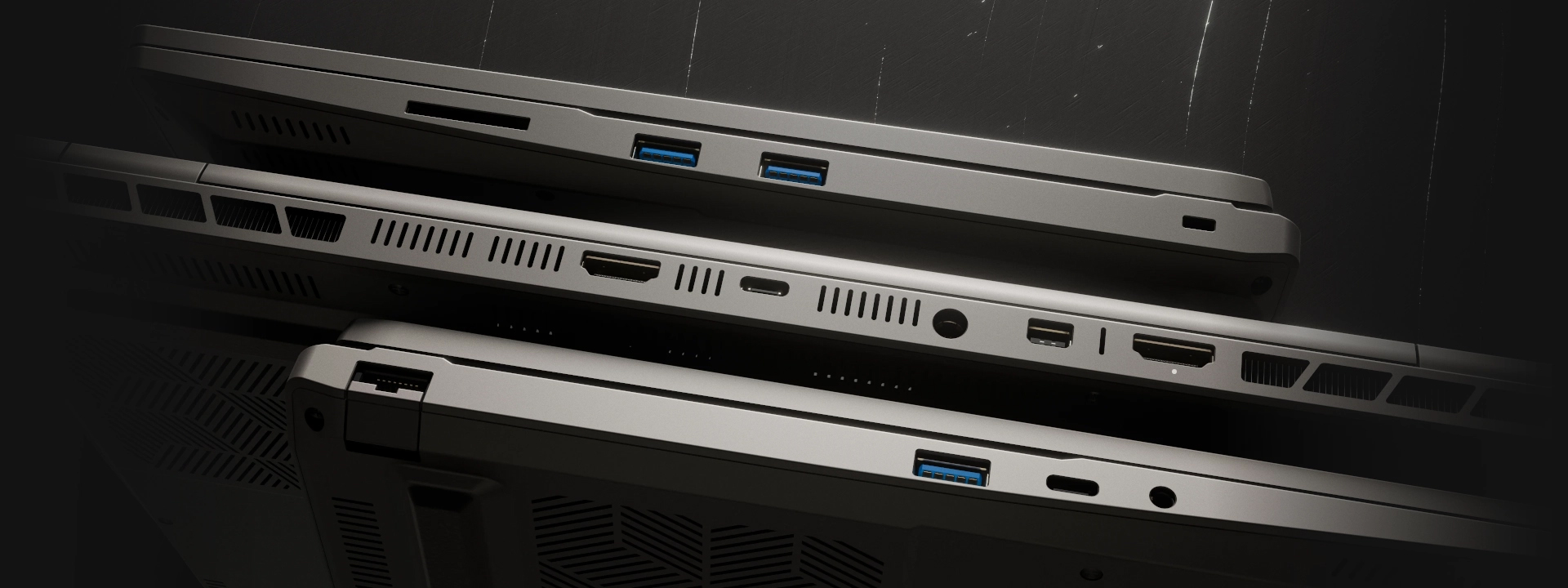 Det finns också en handfull anslutningsportar. För att vara exakt är portkonfigurationen för den bärbara datorn följande: