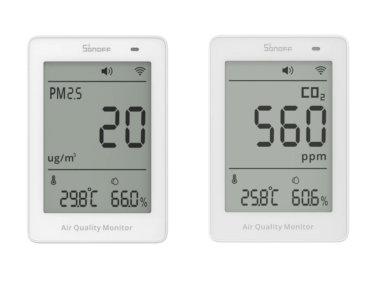 Sonoff AirGuard PM2.5/PM10 Air Quality Monitor är en 4-i-1-enhet som övervakar PM2.5- och PM10-nivåer samt temperatur och luftfuktighet. Sensorn sägs detektera PM2.5/PM10-partiklar som skapas av föroreningar med en noggrannhet på ±50 µg/m3 ±10%. Sonoff AirGuard CO2 Air Quality Monitor beskrivs som en 3-i-1-pryl, som spårar CO2-nivåer tillsammans med temperatur och luftfuktighet. Denna modell har en inbyggd NDIR-sensor som ger CO2-värden med en noggrannhet på ±50 ppm ±5%.