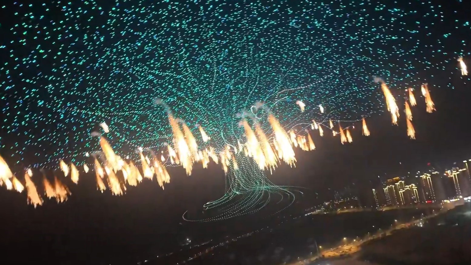 Himlen i Liuyang, i Hunan-provinsen i centrala Kina, lystes upp av en rekordstor drönar- och fyrverkerishow den 17 oktober, ett evenemang som lockade miljontals åskådare både på plats och online. Under stadens berömda fyrverkerifestival sattes två Guinness World Records: ett för "flest drönare som skjutits upp samtidigt av en enda dator" och ett annat för "den största drönarformationsflygningen med flest fyrverkerier"