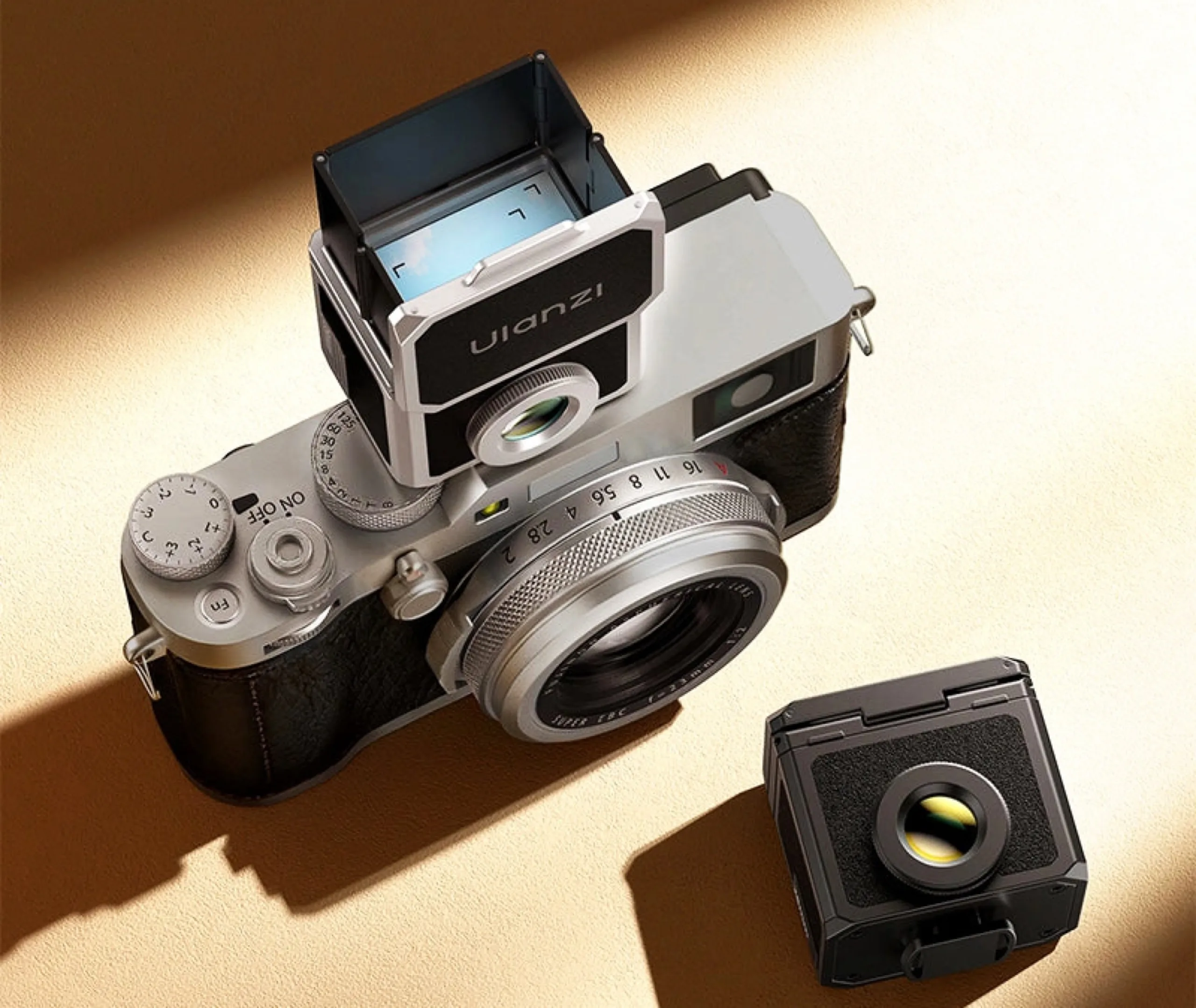 Ulanzi VF-01 är en optisk sökare som fästs på kamerans snabbsko, så att du kan titta ner på kameran och komponera din bild. En spegel och tre linser visar synfältet för ett 28 mm-objektiv, men med hjälp av ramlinjer kan du också se synfältet för ett 35 mm- eller 50 mm-objektiv.
