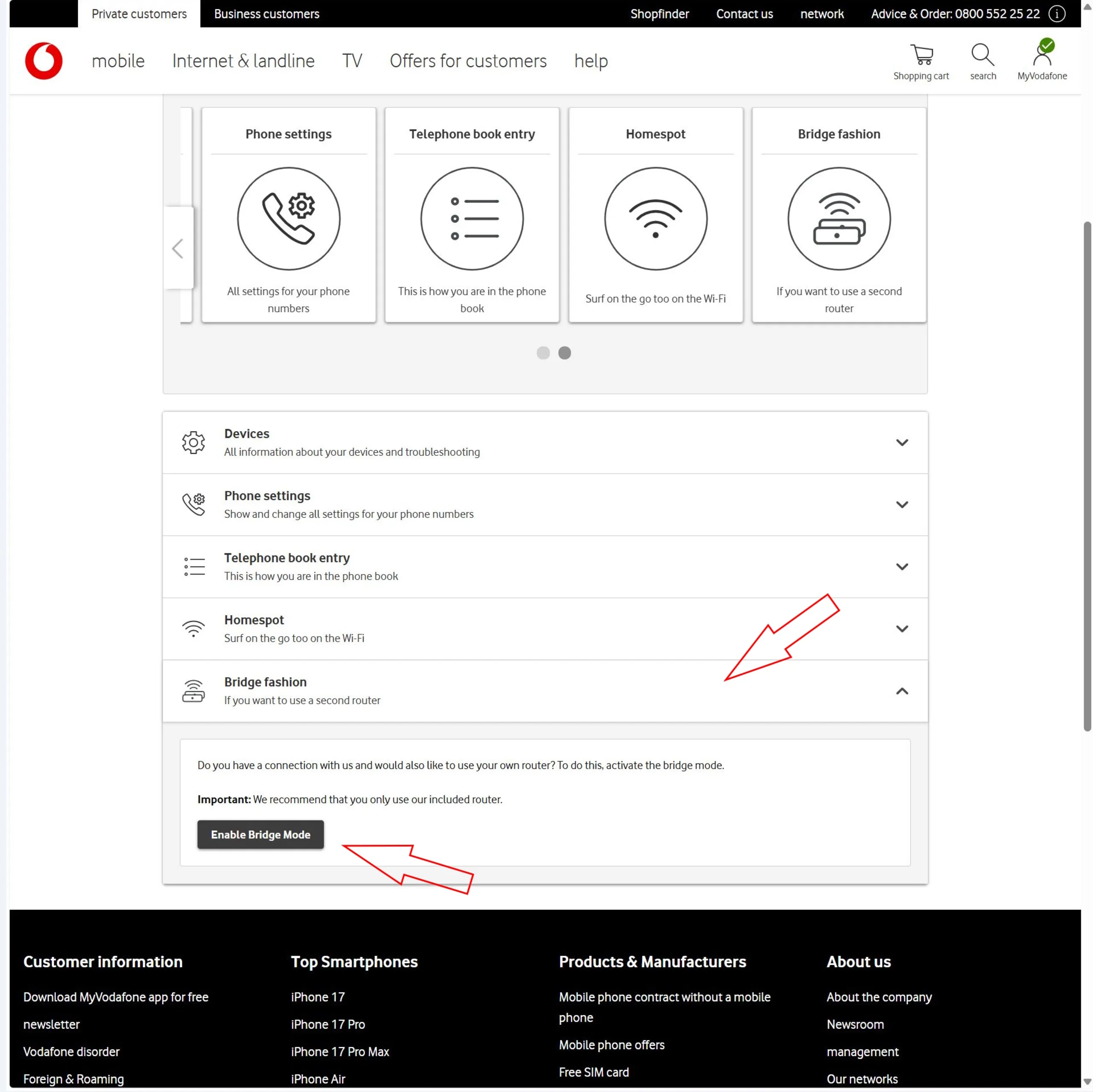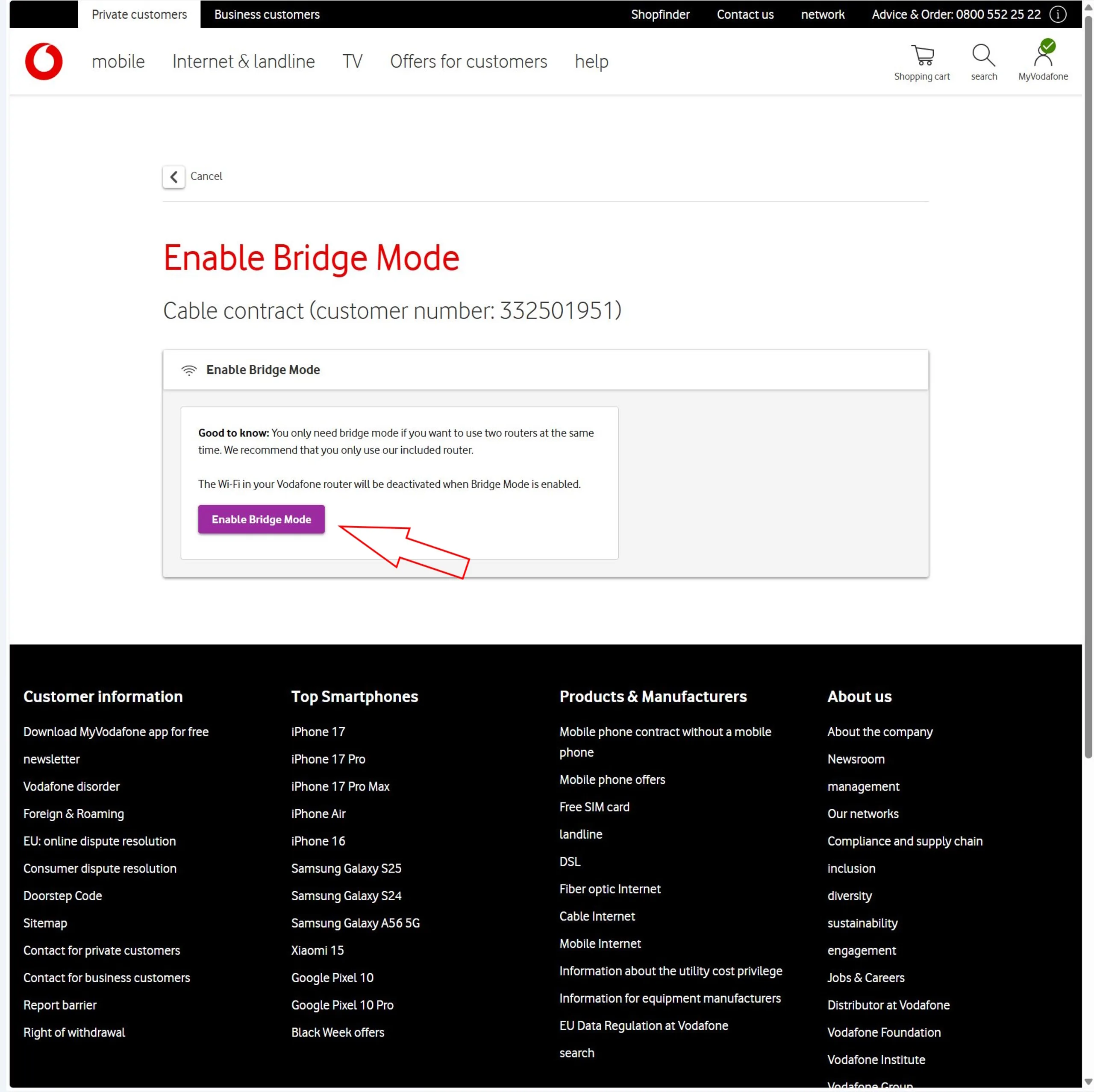 Aktivera bridge-läge i ditt Vodafone-konto