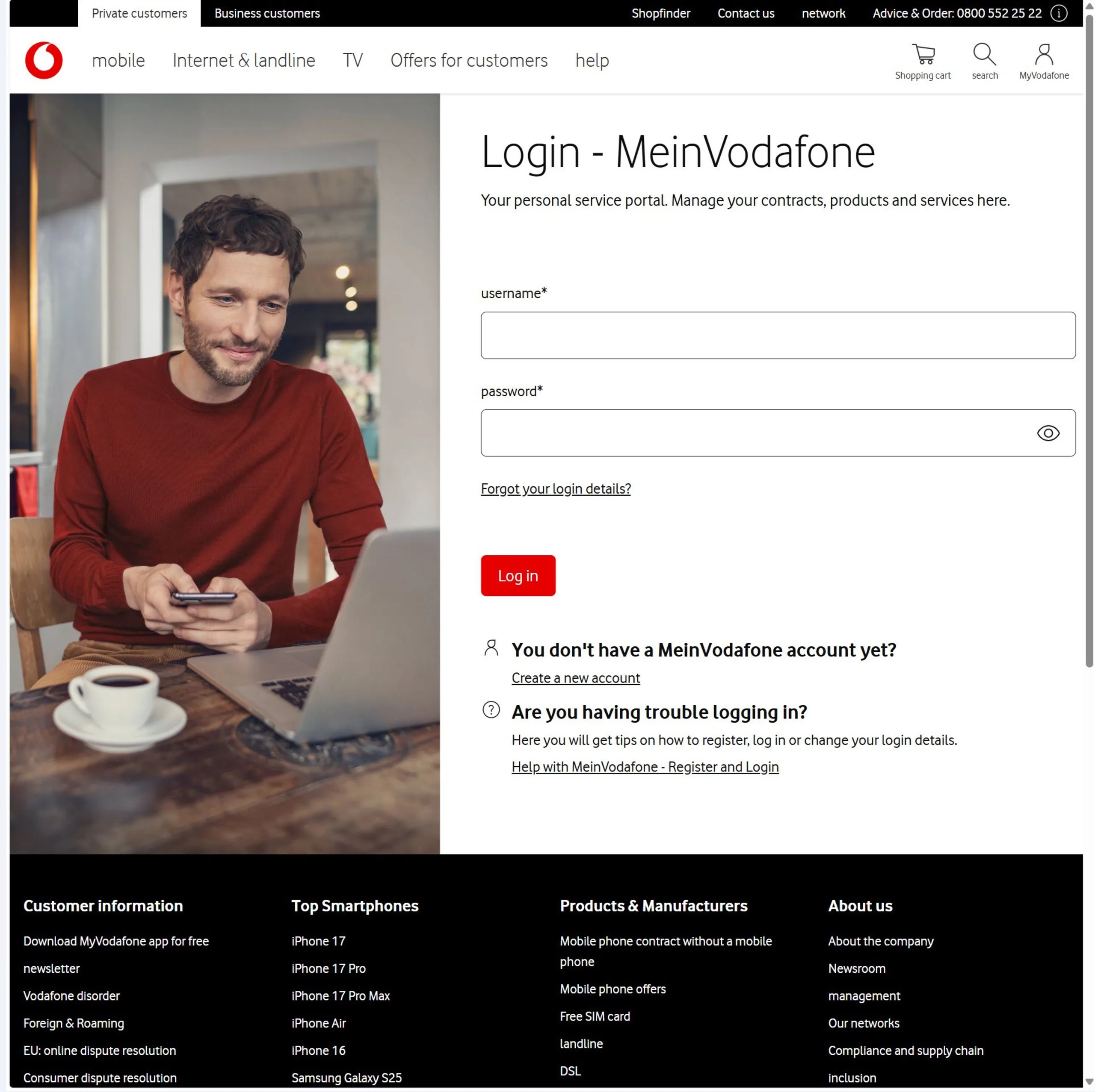 När du har loggat in navigerar du till hemsidan ("My Vodafone"), sedan: