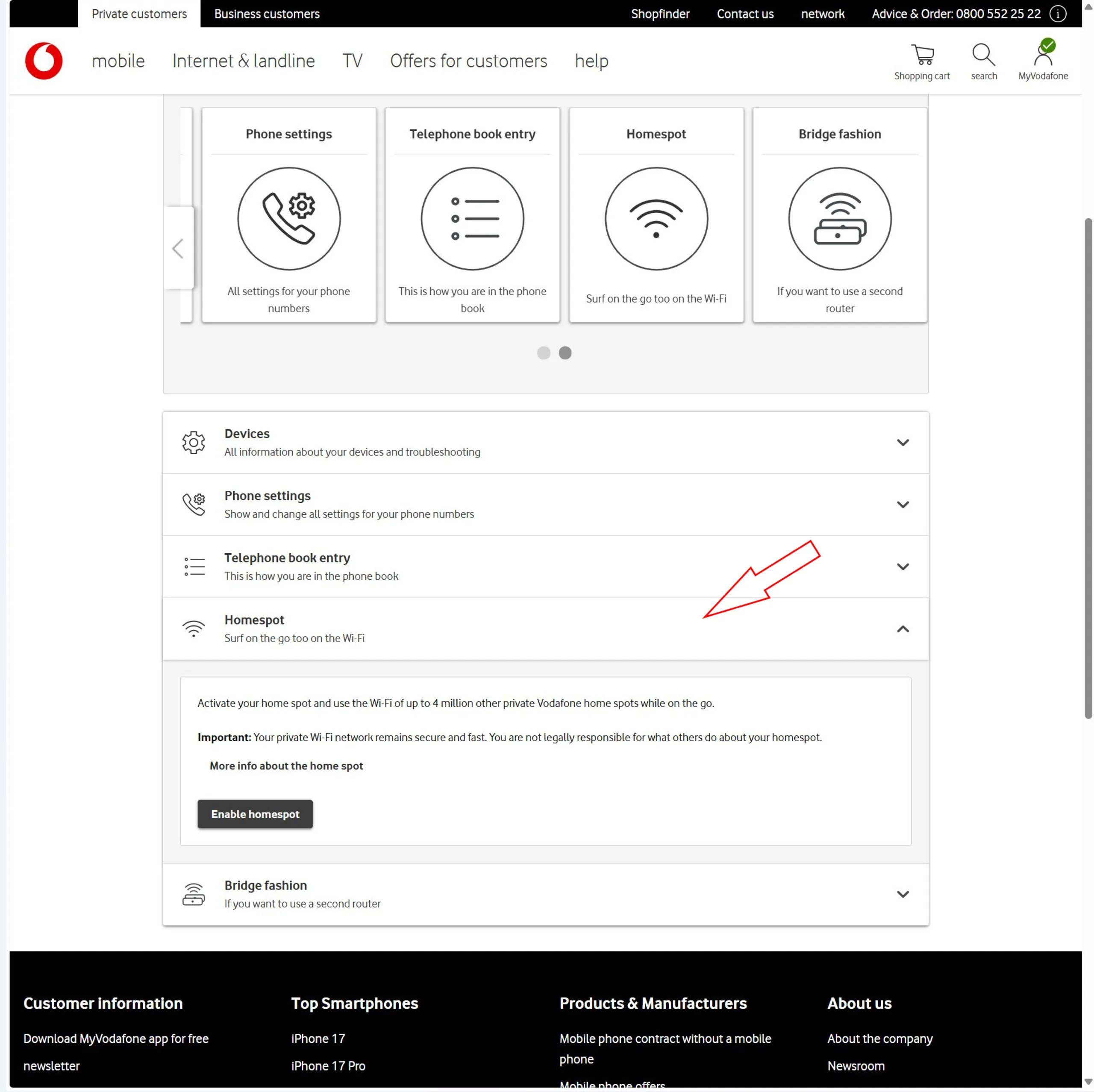 Om du vill fortsätta måste du inaktivera Homespot-funktionen. Tänk på att detta tar bort åtkomsten till Vodafones hotspot-nätverk. Personligen har jag aldrig använt funktionen.