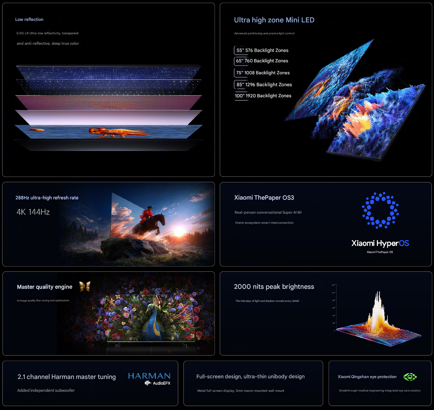 Den uppgraderade Xiaomi S Mini LED-TV-linjen lovar också en smidig spelupplevelse med upp till 288Hz uppdateringsfrekvens, och med låg reflektionsbeläggning syftar skärmarna till att erbjuda en bekväm tittarupplevelse under olika ljusförhållanden. På ljudsidan finns ett 2.1-kanals ljudsystem med Harman AudioEFX-tuning. Kolla in vår tidigare täckning för att lära dig mer om den här serien.