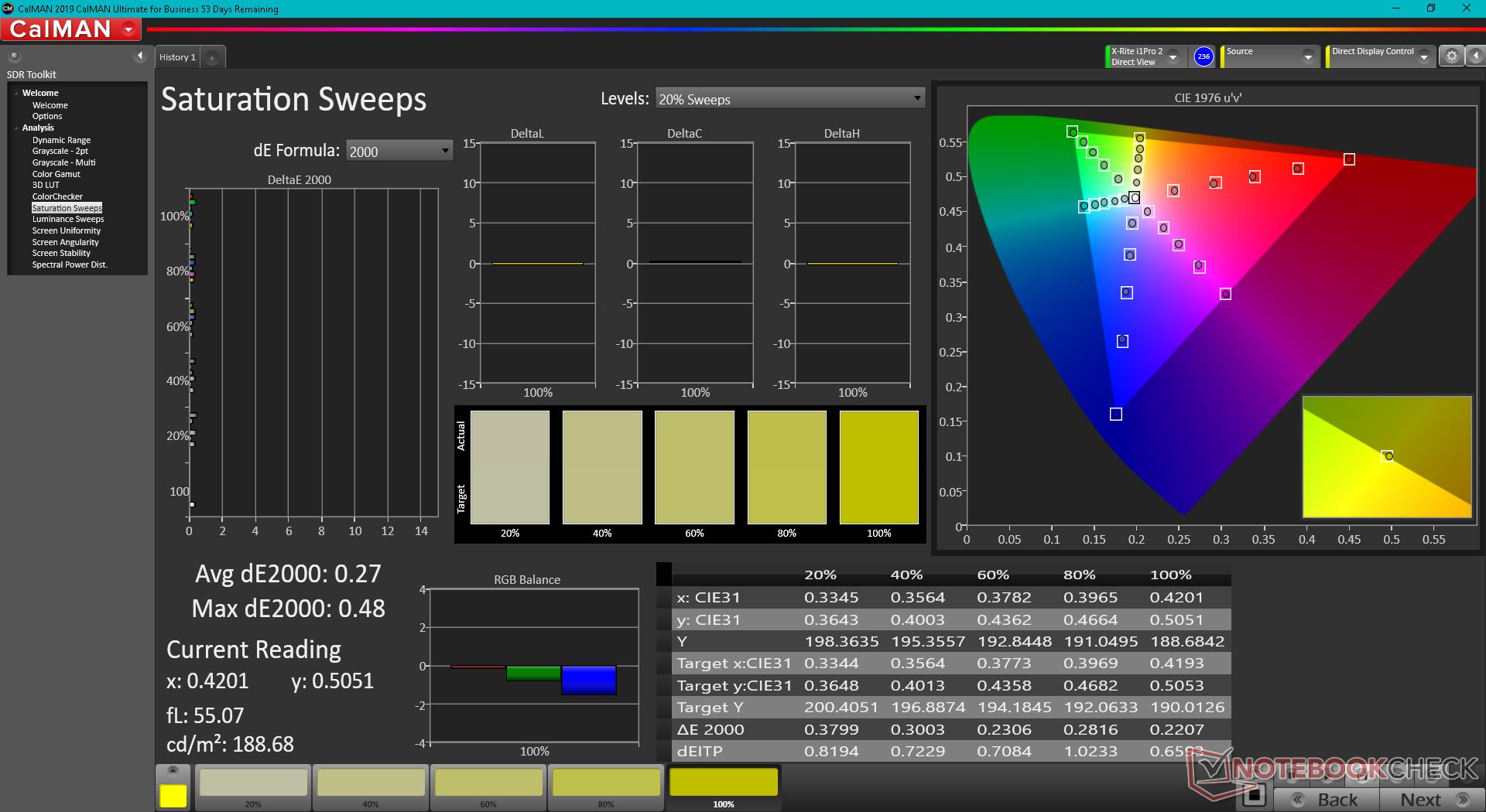 | sRGB Coverage (%) | 99.7 | 98.9 -1% | 99.9 0% | 100 0% | 99.7 0% | 98.7 -1% |