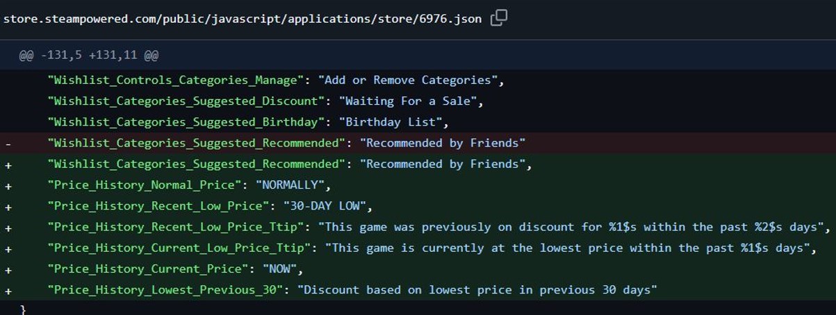Det ser dock ut som att Valve kan arbeta med att ta med den här funktionen direkt i Steam. Uppdateringen delades av LambdaGen och baseras på data som finns på SteamDB, som spårar Steams backend-ändringar gjorda av Valve. Enligt den delade informationen kan Steam snart visa en 30-dagars prishistorik för spel.