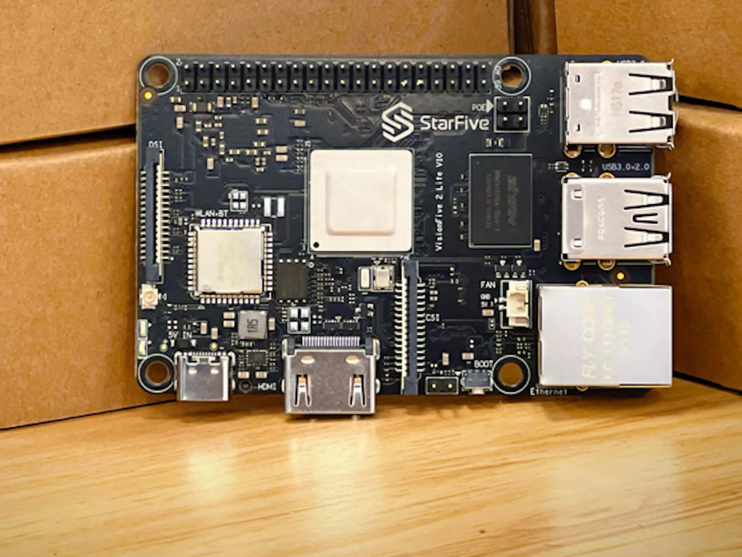 Gigabit Ethernet finns också ombord, och vissa versioner av VisionFive 2 Lite stöder WiFi 6 direkt från förpackningen. Andra externa enheter eller lagringsenheter kan anslutas via en USB 3.0-port eller tre USB 2.0-portar, medan M.2-platsen kan rymma kortare M.2 2242-moduler. En 40-pins GPIO-header finns tillgänglig för anslutning av externa sensorer och ställdon. Slutligen drivs Raspberry Pi 5-konkurrenten med 5 volt via GPIO eller via USB Type-C, och SBC:n har även en 2-polig kontakt för en fläkt.