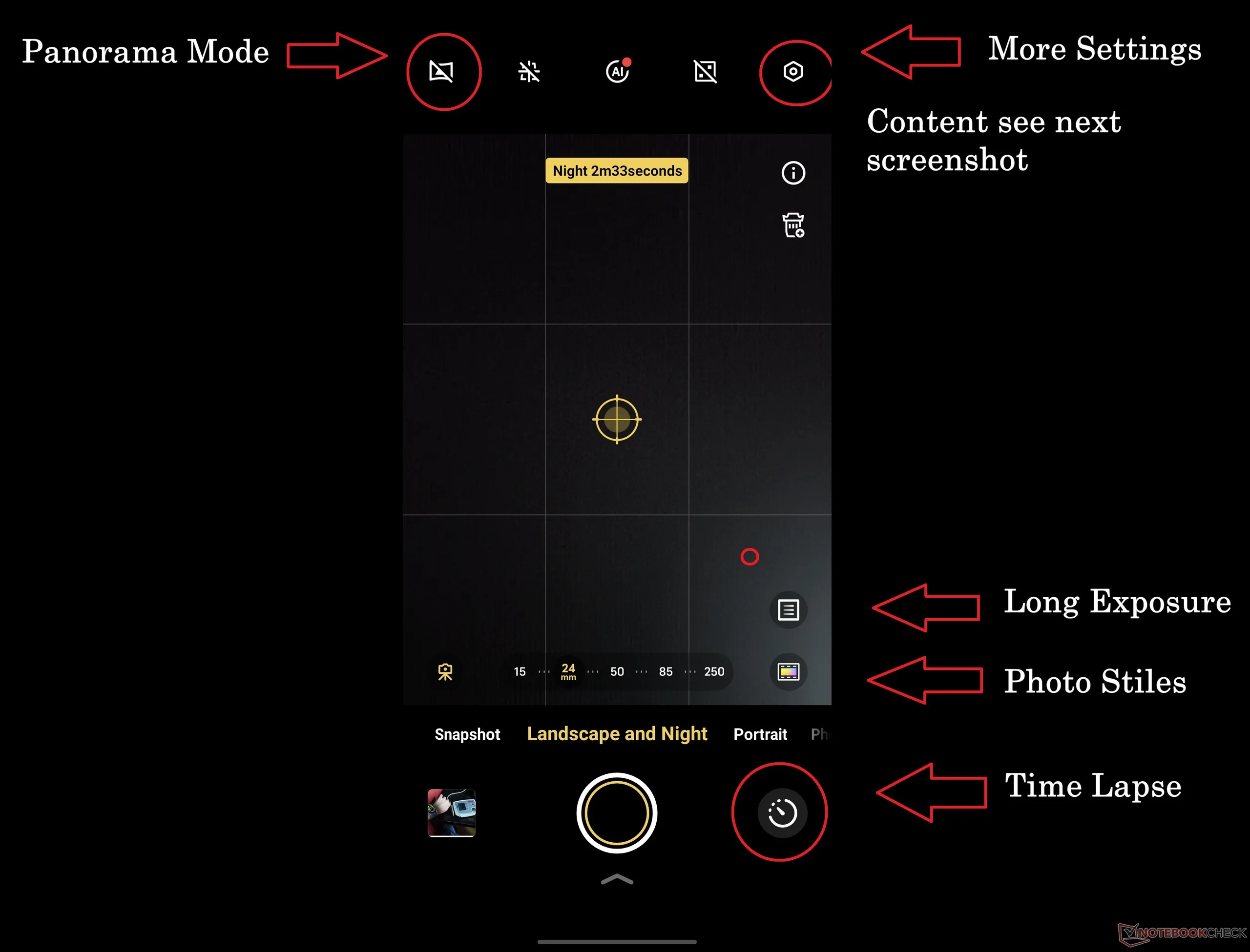 Tyvärr har kameraappen blivit alltmer förvirrande. Jag tycker att det saknas konsekvens här. Det nu namngivna Landskaps- och nattläget för alla typer av speciallägen som lång exponering, Timelapse, Supermoon eller Astro-fotografering är en bra idé i princip, men det är för närvarande lite kaos inom detta läge.