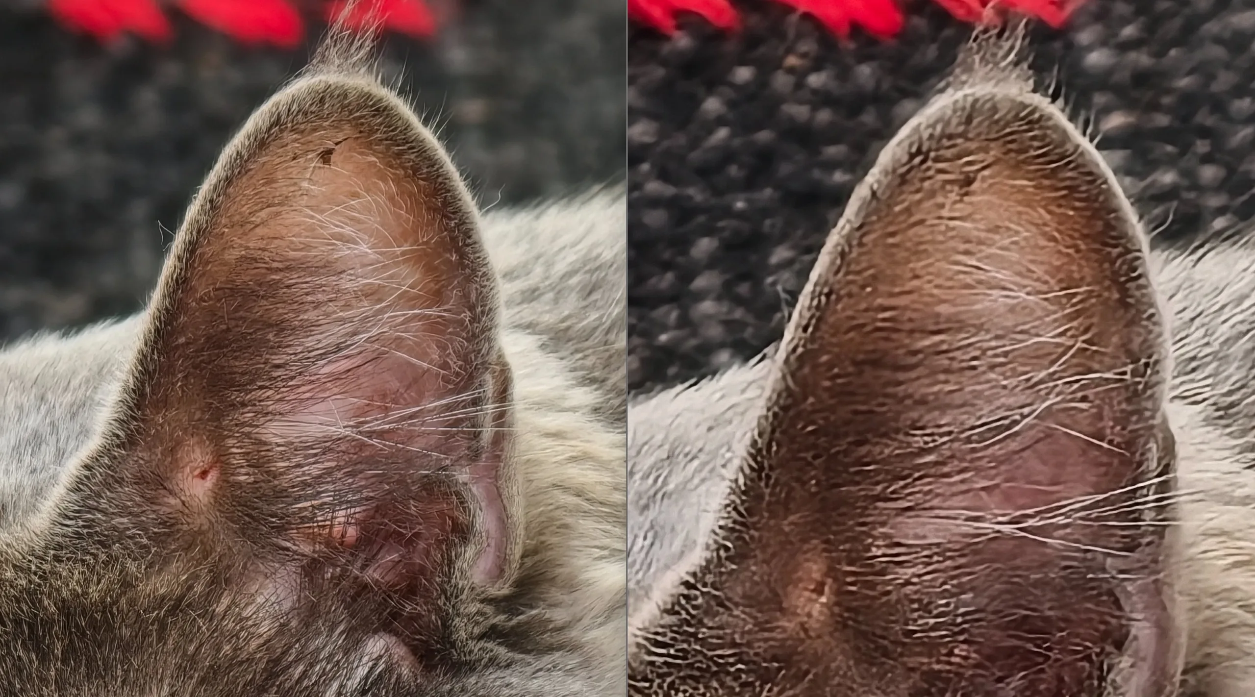 Jag försöker undvika längre intervall, eftersom AI annars i första hand skulle diktera resultatet. Redan vid 400 mm utan objektivet kan man se hur detaljer som t.ex. katthår försvinner och kompenseras genom överskärpning.