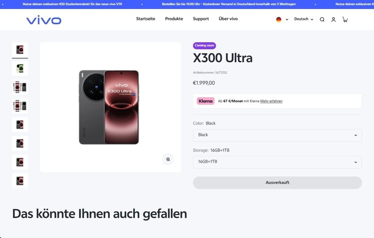 Det finns också mer detaljerad information tillgänglig, särskilt vad som verkar vara det officiellt planerade Euro-priset för Österrike och Tyskland. Den officiella Vivo-butiken för Österrike, Tyskland och Ungern, som har varit på plats sedan lanseringen av Vivo X300 Proverkar redan ha listat Vivo X300 Ultra, åtminstone baserat på skärmdumpar som cirkulerar online. Vid en kontroll var dessa listor inte längre tillgängliga, så läckan kan inte bekräftas direkt, även om skärmdumparna verkar mycket autentiska.