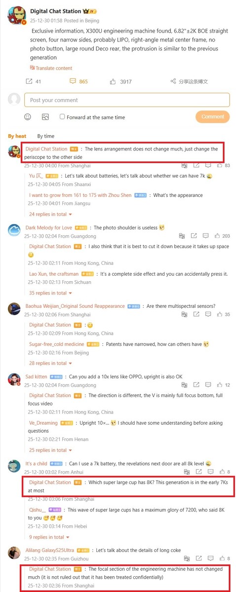 Förutom dessa goda nyheter från EEC-databaserna har den mycket pålitliga läckan Digital Chat Station har också tillhandahållit några ytterligare specifikationer om Vivo X300 Ultra. Som vi tidigare rapporterathar den en platt 6,82-tums OLED-skärm från BOE med smala kanter och platta metallramar, men har tydligen inte längre en dedikerad kameraknapp. För vissa användare skulle detta verkligen vara en stor nedgradering jämfört med Vivo X200 Ultra. Vivo kanske tar en ledtråd från Xiaomi här, eftersom Xiaomi 17 Ultra Leica Edition inte har en avtryckare, eftersom Xiaomi vill sälja valfria tillbehör istället.