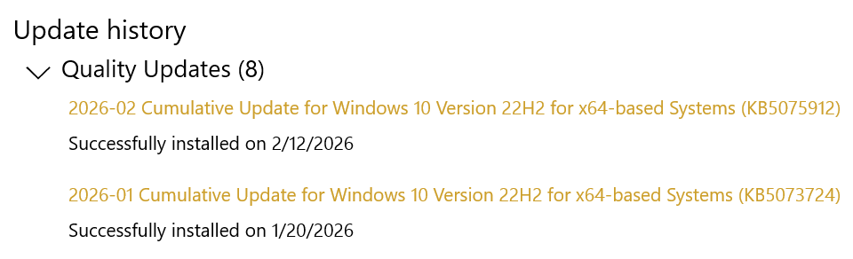 Microsoft hänvisar användare till Microsoft Update Catalog för de fristående paketen, och i katalogen på visas KB5075912 poster för Windows 10 (inklusive 22H2) daterad 10 februari 2026.