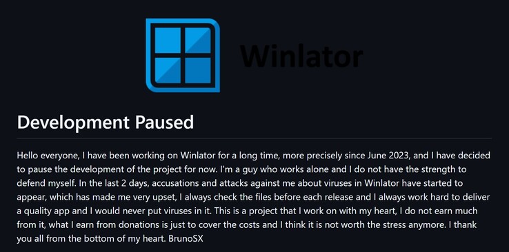 Ändå, med ett nyligen tillkännagivande på emulatorns GitHub-arkivdelade utvecklaren BrunoSX med sig av att utvecklingen av Winlator har tagit en paus. Detta kommer som ett svar på de anklagelser och attacker som dev har mött under de senaste dagarna.