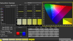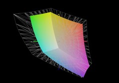 Skärmen visar en god färgåtergivning redan i leveransstadiet och färgavvikelserna håller sig inom målområdet. En kalibrering ger dock fortfarande vissa förbättringar. Skärmen kan inte täcka färgrymderna AdobeRGB (67 %) och DCI-P3 (65 %), men minst 97 % av sRGB-färgrymden visas.