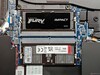 Visuellt har XMG Core 16 M25 en återhållsam design med mattsvarta ytor och ser ut som det smalare syskonet till XMG Neo 16. Aluminiumchassits byggkvalitet och styvhet är utmärkt, även om ytorna tenderar att lätt få fingeravtryck och fläckar. Skärmen kan öppnas upp till 180 grader och förblir stabil i alla vinklar. Underhållsalternativen är generösa: båda RAM-kortplatserna, båda SSD-kortplatserna, WLAN-modulen och batteriet kan bytas ut av användaren.