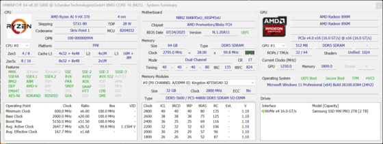 SCHENKER XMG Core 16 M25 AMD Ryzen AI 9 HX 370 ⎘ Nvidia GeForce RTX 5070 Laptop ⎘ 64 GB Minne, 2048 GB SSD | Listpris: 2100€ | 2.1 kg | 23 mm | 16.00" 2560x1600 189 PPI IPS | |