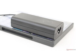 Vi kunde registrera en tillfällig maximal förbrukning på 68 W från den lilla (~11,2 x 5 x 2,7 cm) 65 W AC-adaptern när vi körde Prime95. Förbrukningen skulle sjunka över tiden på grund av termiska begränsningar, vilket kan förväntas från de flesta bärbara datorer i Core U-serien. AMD Zen 3 eller nyare bärbara datorer som Dragonfly Pro kan erbjuda mycket högre prestanda per watt än de flesta, om inte alla, 13:e generationens Core U-drivna lösningar.