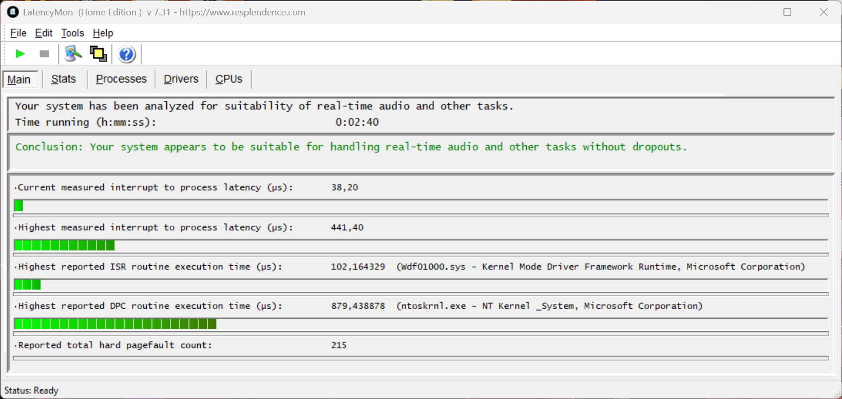 (+) | det totala ljudet är linjärt (14.7% skillnad mot median)