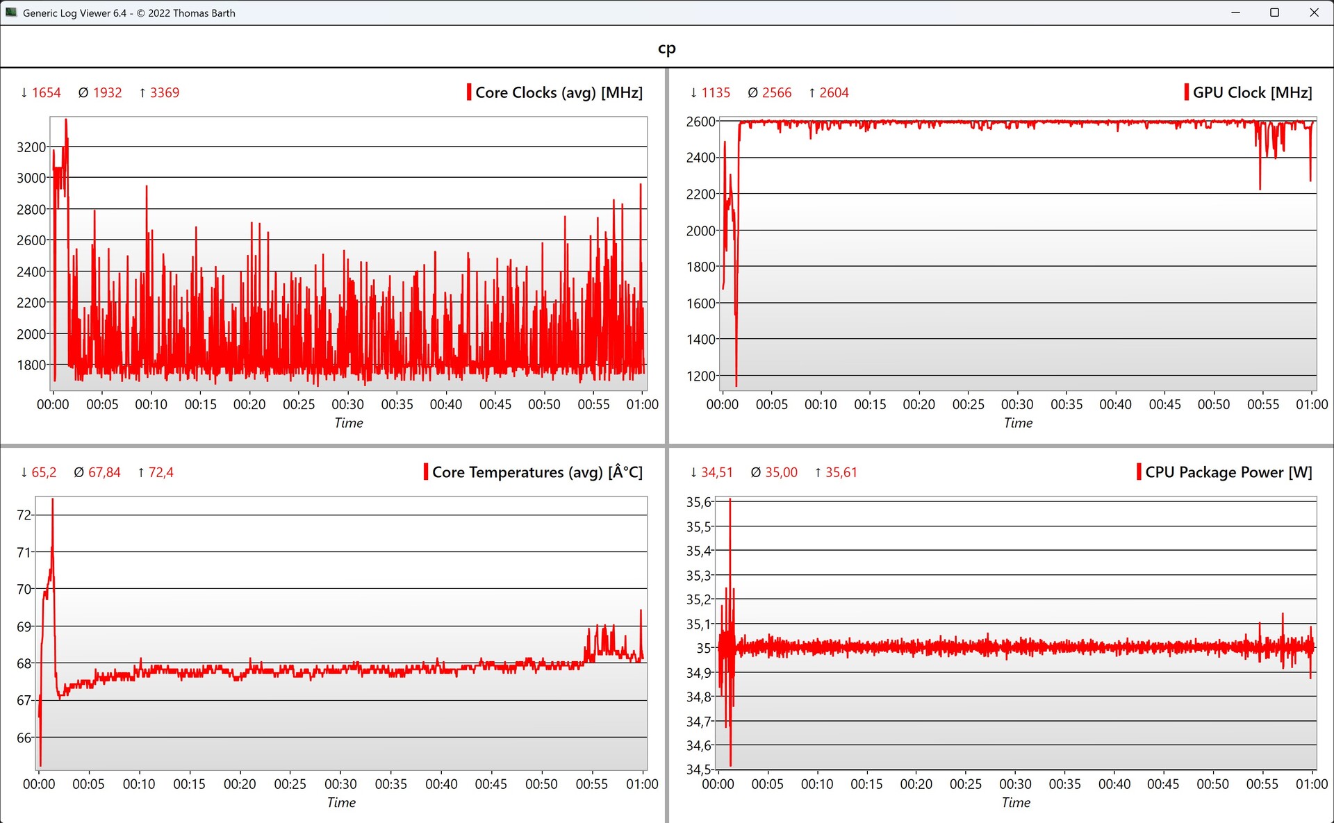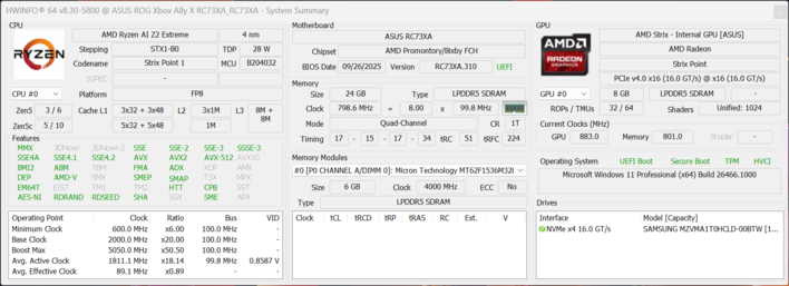 Asus ROG Xbox Ally X Ryzen Z2 Extreme, Radeon 890M, Samsung MZVMA1T0HCLD, IPS, 1920x1080, 7" | GPD Pocket 4 Ryzen AI 9 HX 370, Radeon 890M, , IPS, 2560x1600, 8.8" | Zotac ZGC-G1A1W-01 R7 8840U, Radeon 780M, Phison PS5021-E21 512GB, OLED, 1920x1080, 7" | MSI Claw 8 AI+ Core Ultra 7 258V, Arc 140V, Kioxia BG6 KBG60ZNS1T02, IPS, 1920x1200, 8" | Asus ROG Ally X Z1 Extreme, Radeon 780M, WD PC SN560 SDDPNQE-1T00, IPS, 1920x1080, 7" | Genomsnitt AMD Radeon 890M | Genomsnitt av klass Handheld / UMPC | |