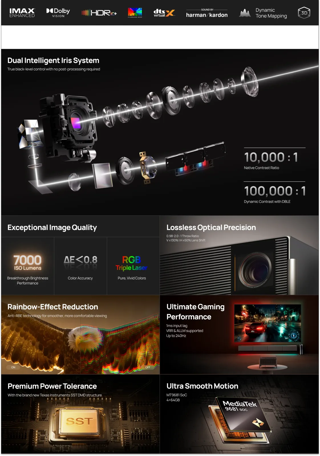 Flaggskeppet Titan Noir Max har RGB trippel-laser teknik och ett dubbelt iris-system. Projektorn sägs vara byggd för dedikerade hemmabiografer och avancerade vardagsrum. Dessutom kan projektorn uppnå ett bildkontrastförhållande på 100000:1, tack vare dess 7 000 ISO-lumen.