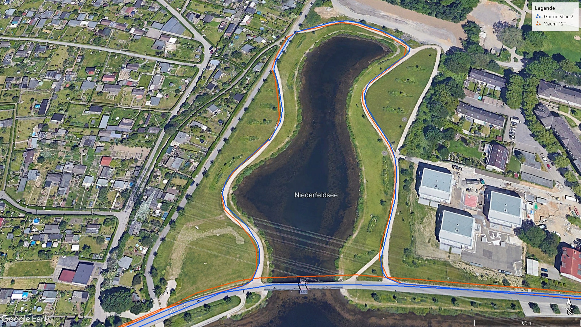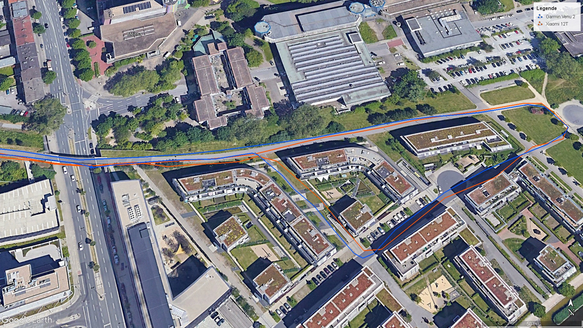På en cykeltur ställde vi Xiaomis smartphone mot Garmin Venu 2. Den registrerade totalsträckan på nästan tio kilometer avvek med endast 20 meter. Den detaljerade ruttplanen avslöjade några felaktigheter från 12T:s sida, men lyckades ändå med övertygande lokaliseringsresultat.