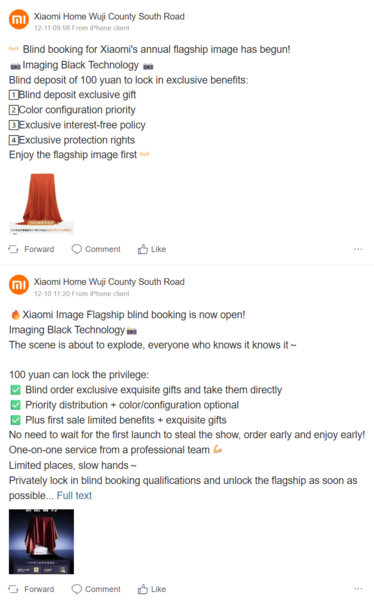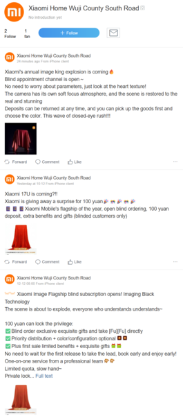 Kinesiska smartphone-fans som vill få tag på vad som sannolikt är en av de mest spännande flaggskeppstelefonerna nästa år kan redan placera en deposition på 100 yuan (cirka $ 14) för att reservera Xiaomi 17 Ultra i förväg, vilket marknadsförs av Xiaomi Store på Weibo. I ett av många inlägg om detta ämne hänvisar det till och med uttryckligen till den osläppta handenheten genom att ange "Xiaomi 17U kommer?!!!", även om det fortfarande är en "blindbokning" vid denna tidpunkt.