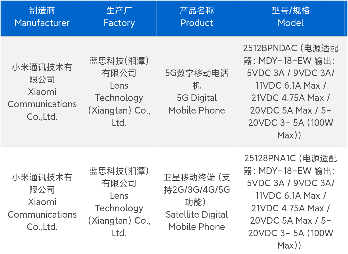 Efterträdaren till Xiaomi 15 Ultra har setts i Kinas 3C-certifieringssystem, med två olika modeller listade. CCC-posterna bekräftar att båda varianterna stöder 100-watts snabbladdning - liknande Xiaomi 17, Xiaomi 17 Pro och Xiaomi 17 Pro Max. Enligt certifieringen skiljer sig modellerna 2512BPNDAC och 25128PNA1C endast åt i sin mobilanslutning: Den förstnämnda stöder uteslutande 5G-nätverk, medan den senare lägger till satellitanslutning (åtminstone i Kina). Prolific leaker Digital Chat Station hävdar att denna variant stöder Beidou-satellit-SMS och Tiantong-satellitsamtal