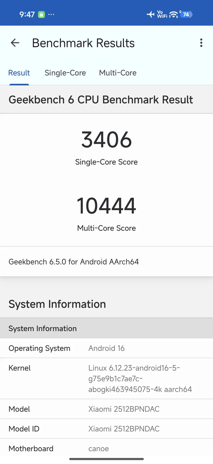 | Geekbench 6.5 | |