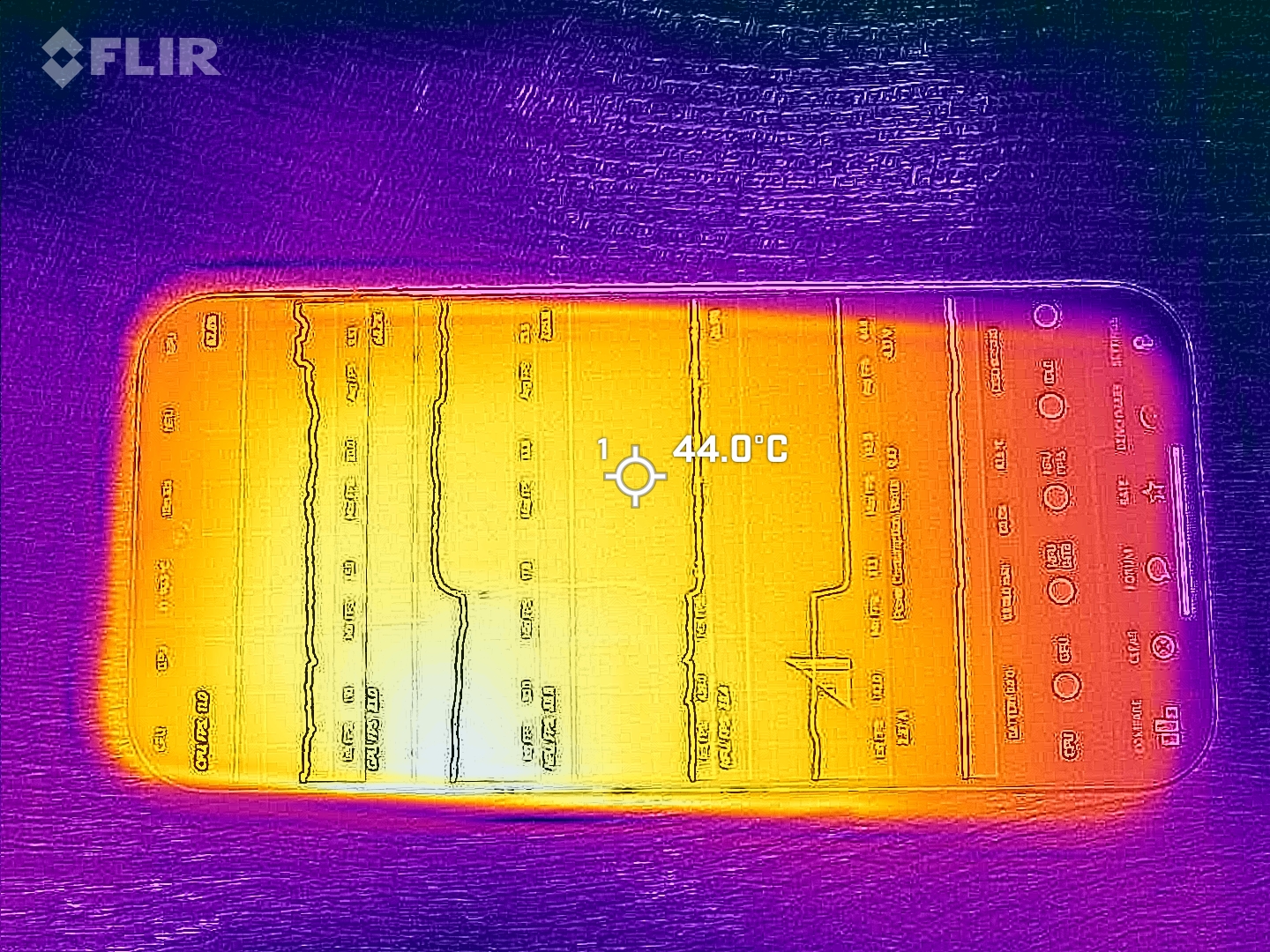 Xiaomi 17 Ultra är svalare under belastning än Pro Max-modellenunder simulerad kontinuerlig belastning med Burnout-riktmärket stiger yttemperaturerna fortfarande till 50 °C (122 °F) i vissa fall.