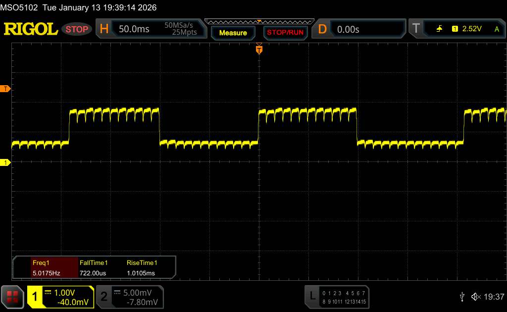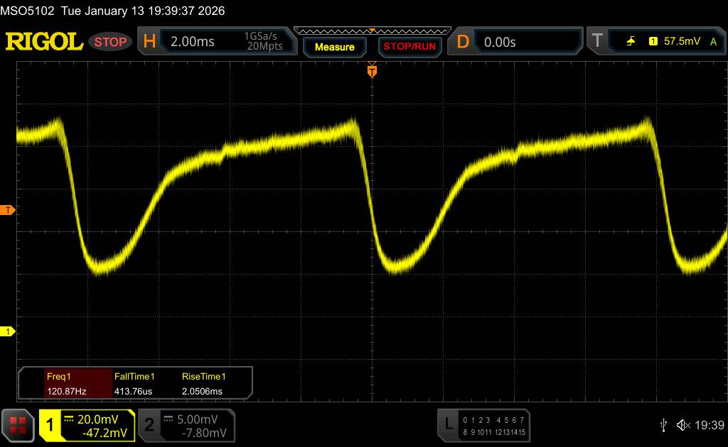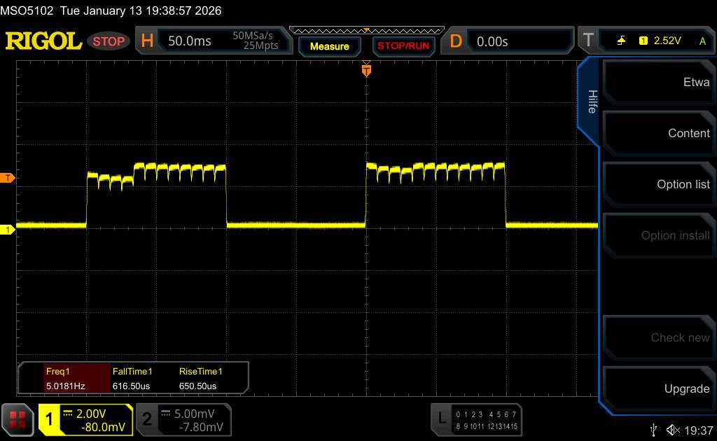 Med oscilloskopet mätte vi också en grundläggande flimmer i intervallet för den inbyggda uppdateringsfrekvensen. Xiaomi använder också en högfrekvent PWM-dimning med 2 160 Hz, vilket inte borde orsaka några klagomål för de flesta.