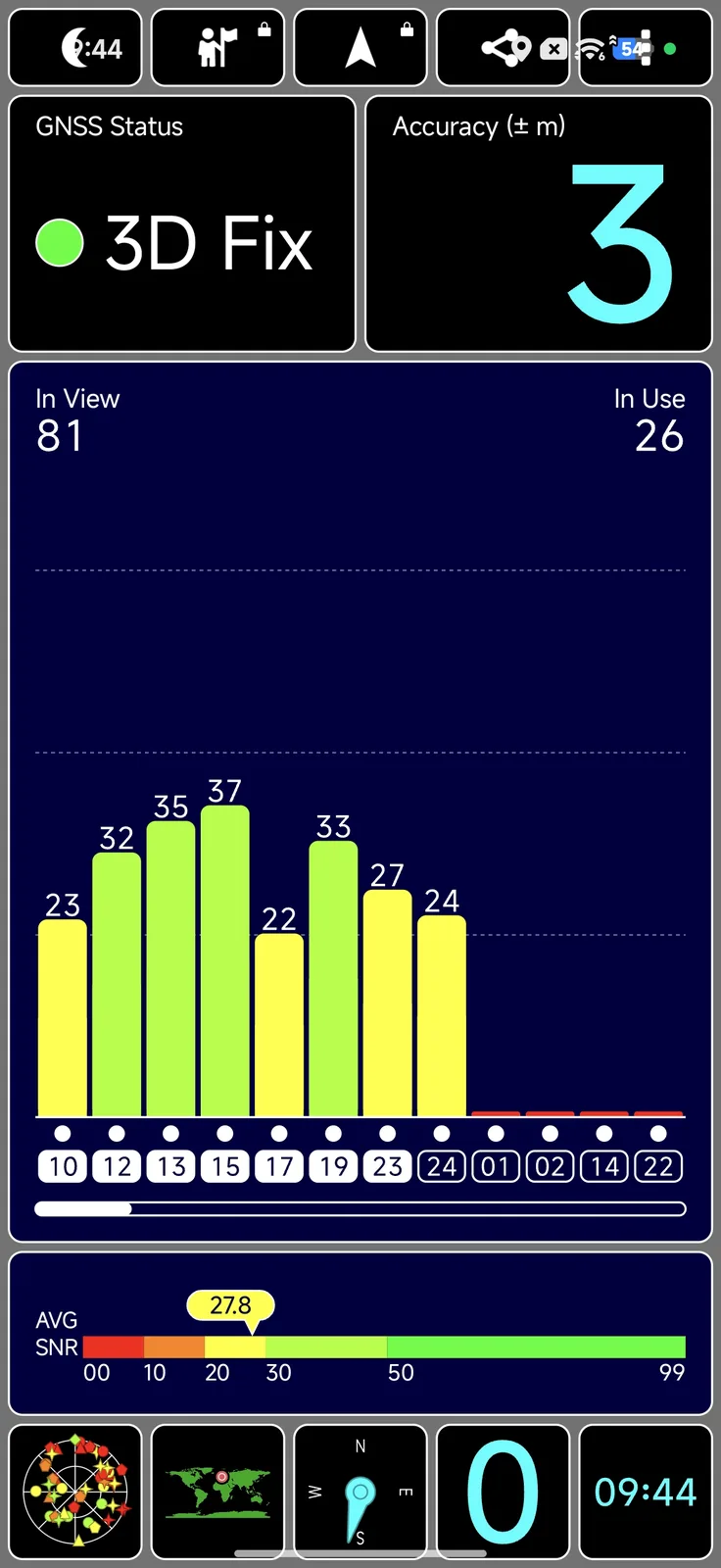 Dual- och tri-band-anslutning i globala satellitnätverk är tillgänglig för positionering. Satellitfixen är mycket exakt både inomhus och utomhus.