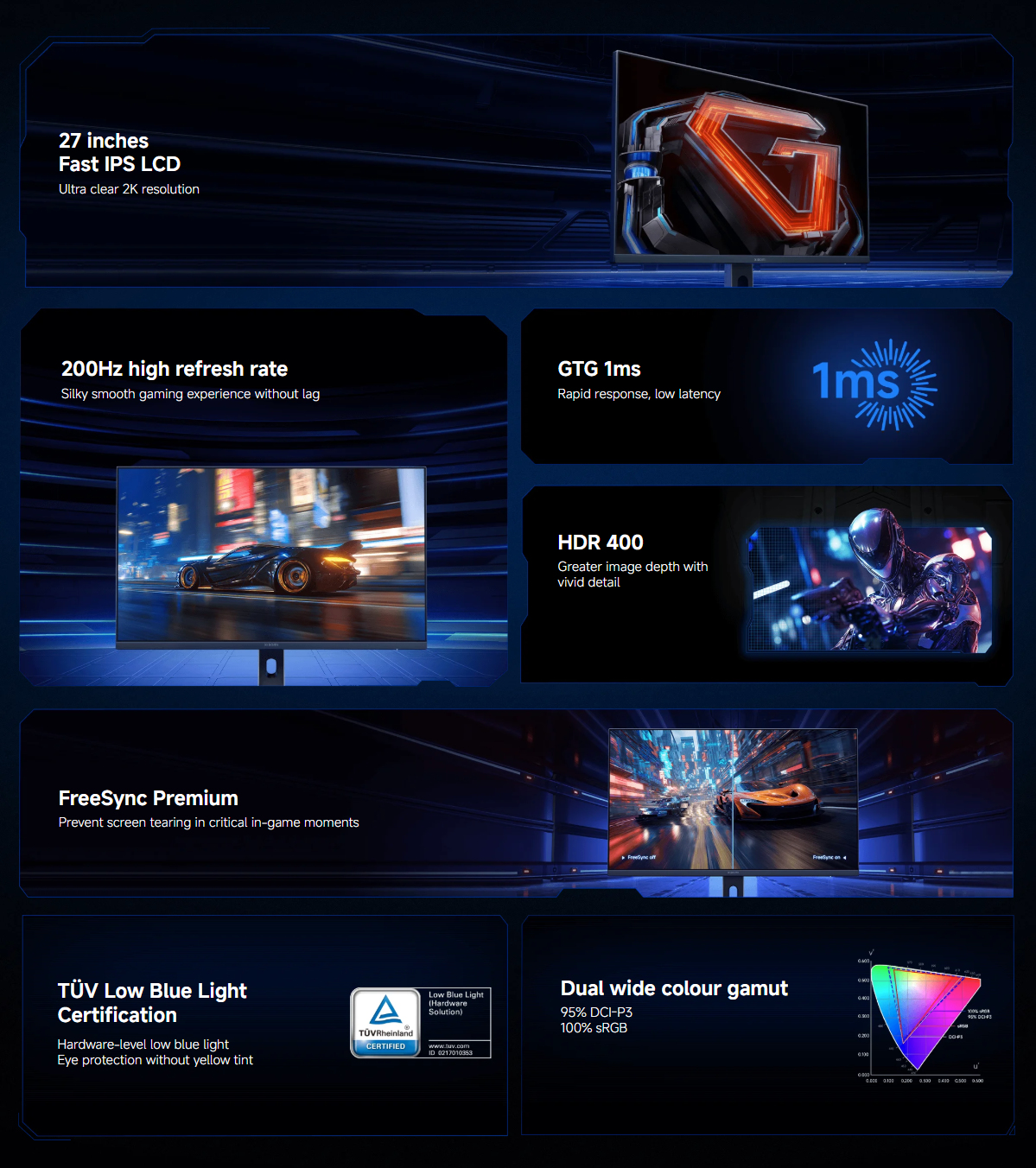 Dessutom rapporterar Xiaomi en maximal ljusstyrka på 400 nits, ett kontrastförhållande på 1 000:1 och en GtG-svarstid på 1 ms. Dessutom erbjuder 2K Gaming Monitor G27Qi 2026 AMD FreeSync Premium för att minska skärmrivning. Skärmen har också ett 3,5 mm-uttag samt dubbla DisplayPort 1.4- och HDMI 2.0-portar. För närvarande säljs 2K Gaming Monitor G27Qi 2026 för 289 AUD (~ 201 $), rabatterat med 28% från 399 AUD (~ 278 $). Det finns dock ännu inga uppgifter om tillgänglighet för andra marknader.