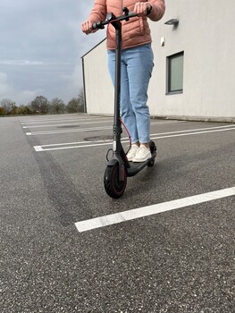 Vändcirkeln (pushed) är bara 1,3 meter, vilket gör att e-scootern är betydligt mer manövrerbar än Niu KQi3 (här i testet) eller den Eleglide Coozy.