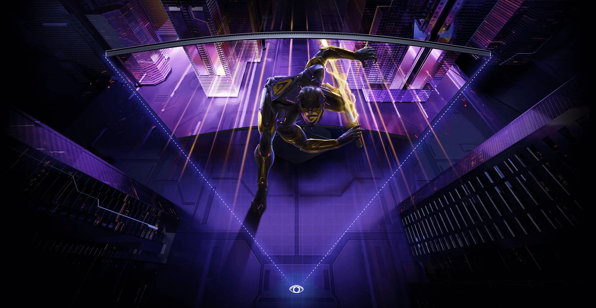 Den bakre panelen har en slående design och har RGB-belysning. Här finns två HDMI- och DisplayPort-portar, men inga USB-portar alls. Skärmen kan justeras i höjdled, roteras och lutas med hjälp av det medföljande stativet, och kan monteras på ett väggfäste eller en monitorarm med hjälp av VESA. Slutligen har monitorn en krökningsradie på 1 500 millimeter