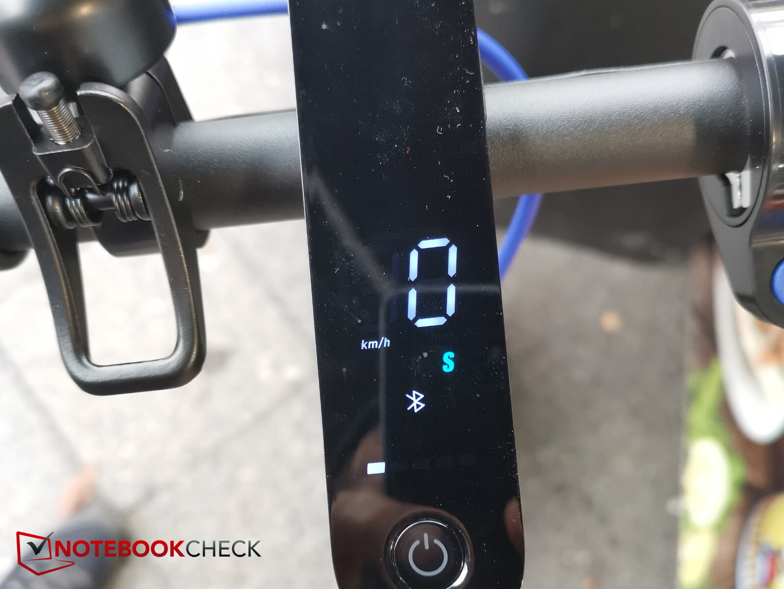På displayen visas förutom den aktuella hastigheten även ljusstatus, körläge, eventuella fel, status för Bluetooth-anslutning och batteriladdningsnivå i form av 5 staplar. För att få fram kilometersiffrorna måste du använda appen igen. Det finns dock ingen total körsträcka även där
