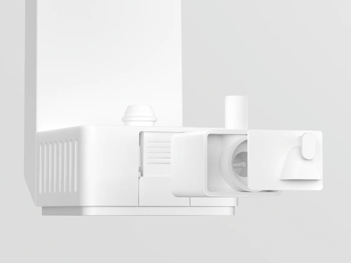 Ett filter är installerat, vilket främst är avsett att förhindra eller åtminstone minska mikrobiologisk kontaminering. Både filtret och vattenpumpen kan tas bort. På toppen av det 230 x 432 mm stora systemet finns en display, men det är också möjligt att integrera systemet i smarta hem eftersom det är kompatibelt med Google Home och Alexa. Styrningen sker inte i första hand direkt genom att välja en effektnivå, utan istället definieras en målfuktighet som sedan fungerar som referensvärde. Den specificerade ljudnivån är 30,7 dBA