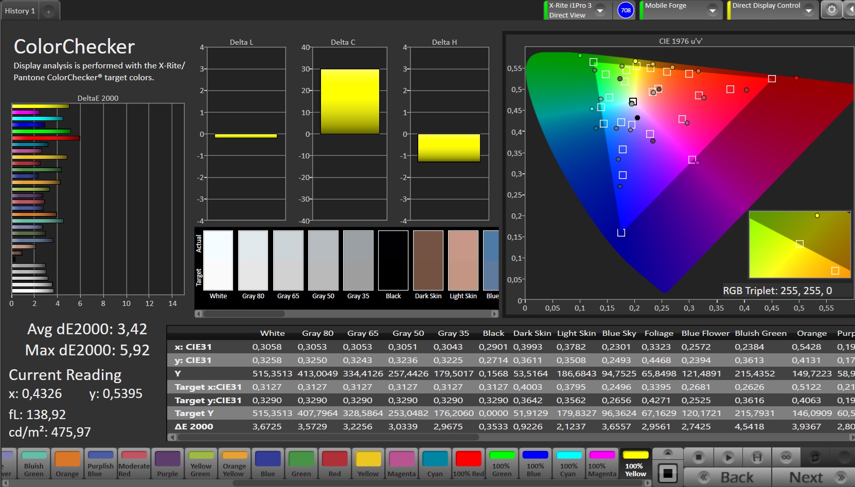 | Colorchecker dE 2000 * | 3.42 | 1 71% | 0.9 74% | 1.7 50% | 1 71% |