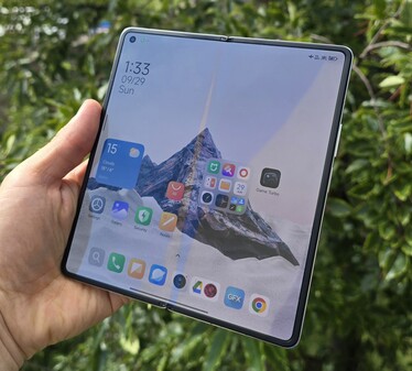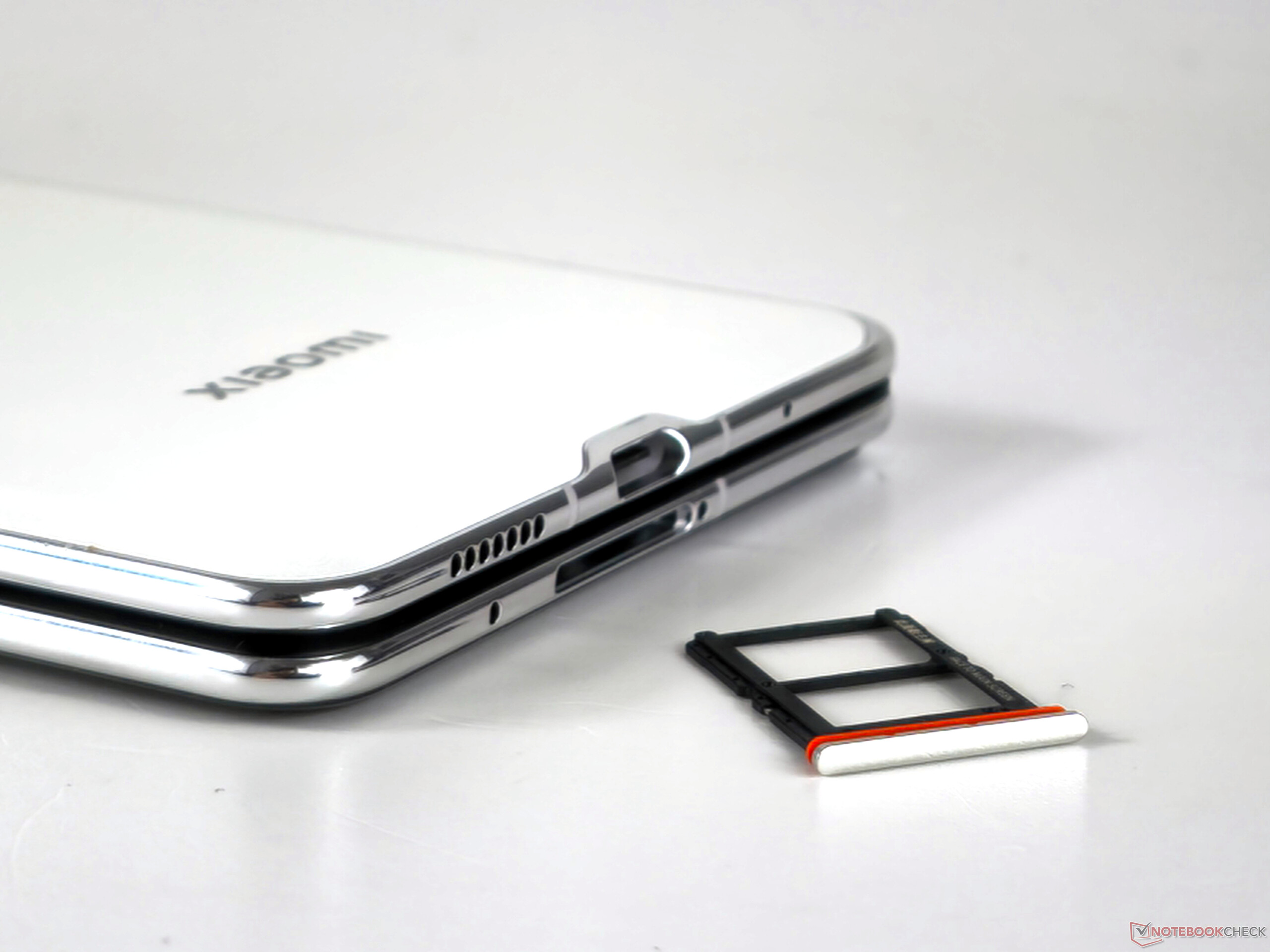 Xiaomi använder sitt eget Dragon Crystal Glass på framsidan. På insidan används förmodligen Schott UTG på samma sätt som på Flip-modellen. Tack vare de smala ramarna runt den flexibla OLED-panelen är dess display-till-yta-förhållande effektivt på nästan 90 procent. Detta är ett bra värde, även om en Vivo X Fold 3 ser ännu mer gränslös ut, med ett förhållande på 91 %.