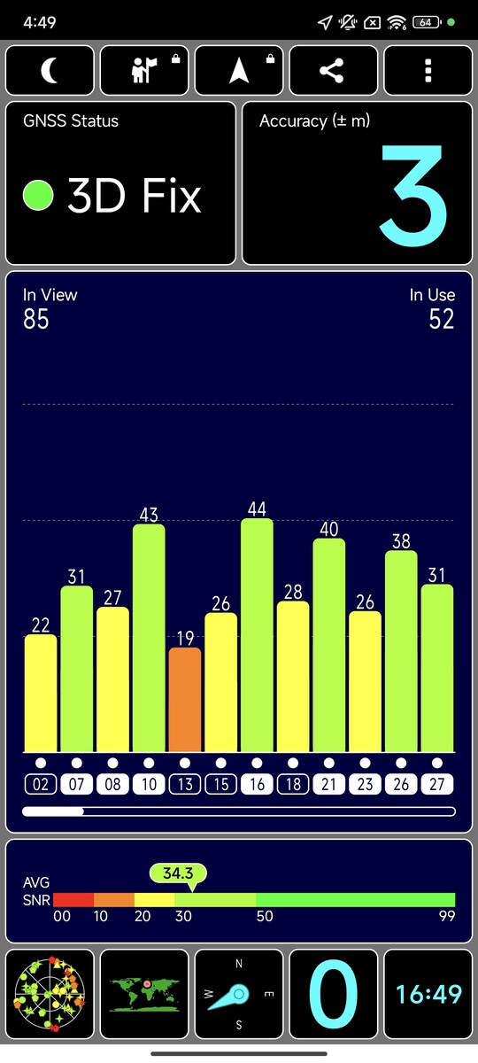 Redmi K70 Pro använder de viktigaste satellitsystemen för att fastställa sin position: GPS, Galileo, GLONASS och Beidou, vanligtvis i dual band. Positioneringsnoggrannheten för mellanklass-smarttelefonen, som vi testade på en kort cykeltur, är mycket bra.