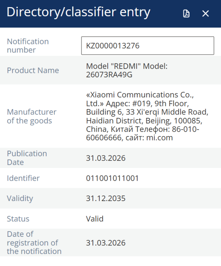 Därför misstänker vi att Xiaomi kommer att lansera 26073RA49G senare i år. Dessutom bekräftar dess modellnummer att det är en global enhet. Utöver det antyder modellnumret att Xiaomi kommer att introducera enheten runt juli 2026 i någon kapacitet.