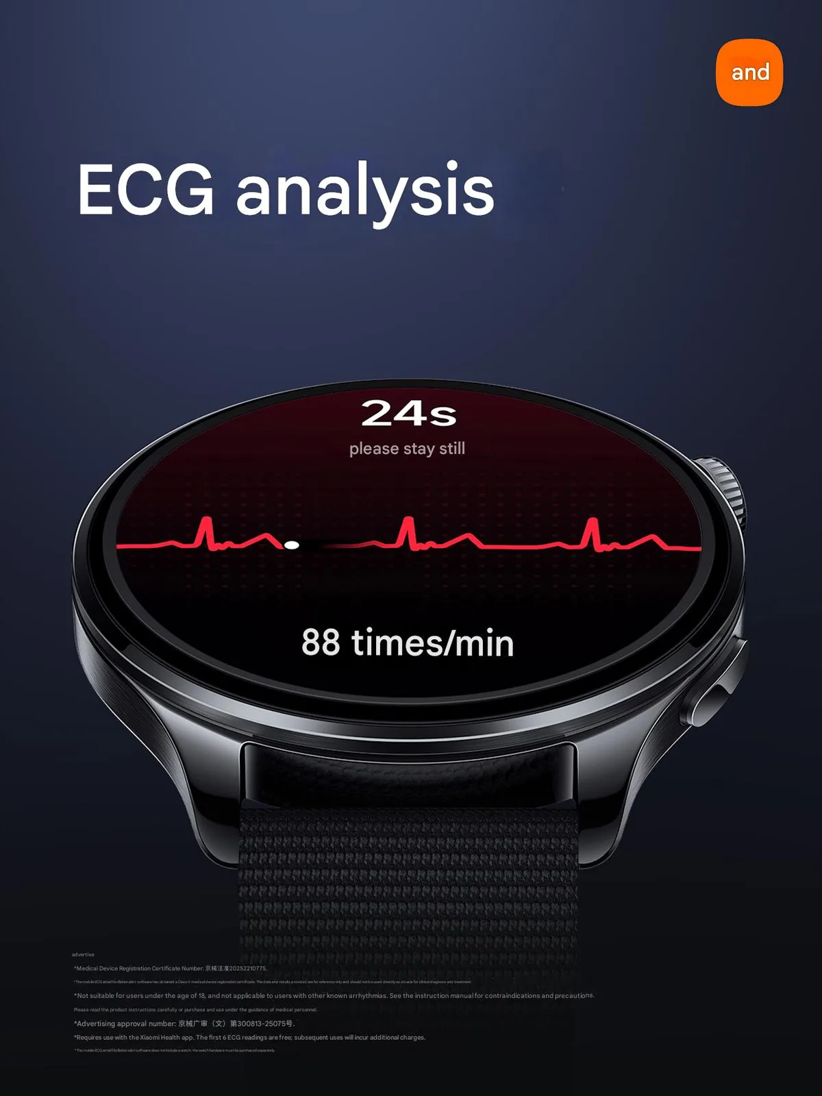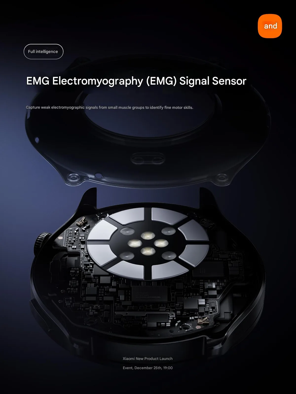 Smartklockan kommer att drivas av Qualcomm Snapdragon W5 chipset, och Xiaomi utlovar nya hälsofunktioner som EKG samt en elektromyografisk (EMG) sensor som kan mäta den elektriska aktiviteten i musklerna. Det är oklart vad Xiaomi kommer att utvärdera med den här funktionen, men i princip kan tekniken användas för muskel- och nervsjukdomar men också för prestationsoptimering inom sport. Designen på den nya Xiaomi-smartklockan är också ganska slående, eftersom tillverkaren valde en kropp i rostfritt stål och dubbelsidigt safirglas med en reptålig yta.