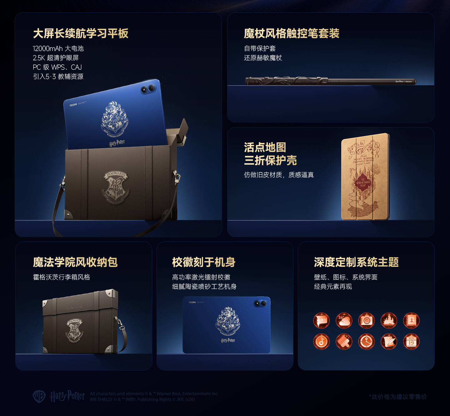 Däremot är Redmi Pad 2 Pro har varit till försäljning globalt sedan september förra året (curr. $ 268 på Amazon). Nu har Xiaomi uppdaterat sin 12,1-tums surfplatta med en Harry Potter Edition, som ansluter sig till Wi-Fi- och 5G-varianter som Xiaomi redan erbjuder internationellt. Kärnspecifikationerna förblir oförändrade för enhetens kinesiska release också, med en Qualcomm Snapdragon 7s Gen 4 chipset kompletterat med ett 12 000 mAh batteri och 33 W trådbunden laddning.