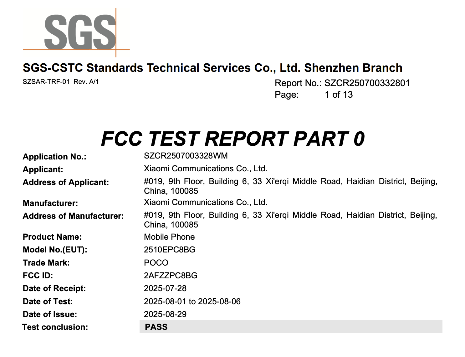 För att sammanfatta, tidiga detaljer om Poco M8 Pro dök upp i augusti. Vid den tiden indikerade det visade modellnumret att Poco M8 Pro var en ommärkt Redmi Note 15 Pro Plus. Nu har Federal Communications Commission (FCC) certifierat samma enhet för försäljning i USA. Som bilderna nedan visar hänvisar FCC till '2510EPC8BG' som en produktionsenhet, vilket antyder att en fullständig release är nära.