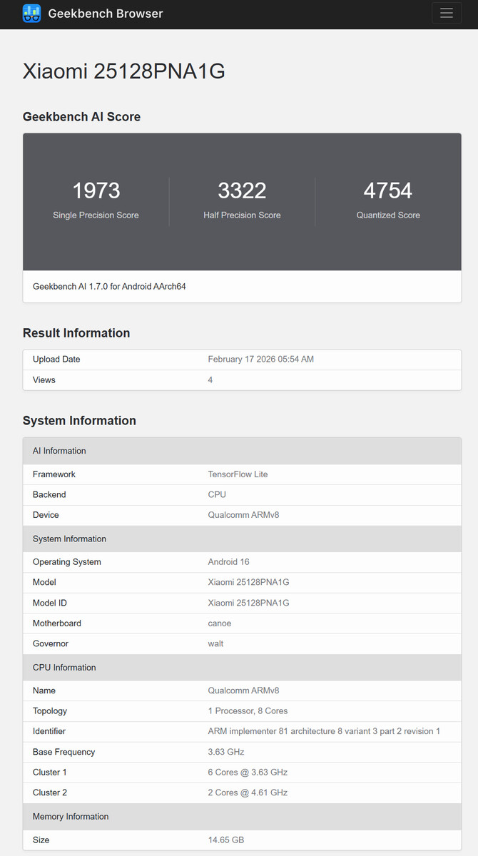 Nyligen har läckor fokuserat på global tillgänglighet av Xiaomi 17 och Xiaomi 17 Ultra. Kort sagt, olika källor förväntar sig att paret matchar priserna på Xiaomi 15 Ultra och dess mindre syskon (curr. $ 809 på Amazon). Medan motsvarande detaljer om Leica Edition förblir okända för tillfället, har den globala versionen äntligen dykt upp på Geekbench under modellnumret 25128PNA1G.